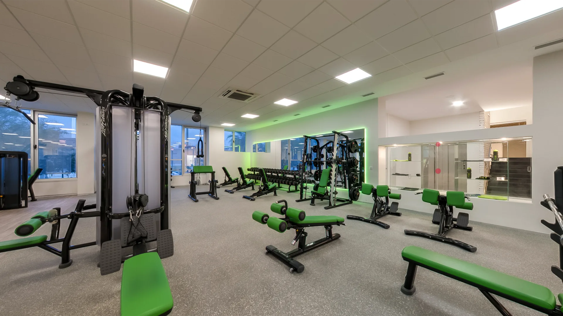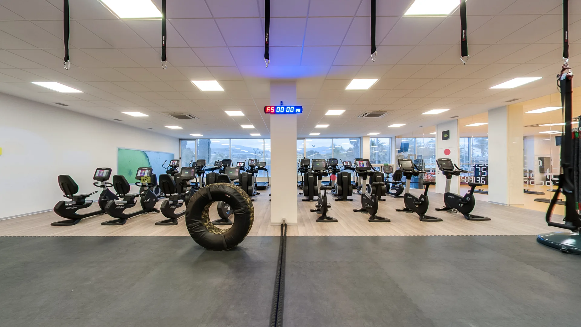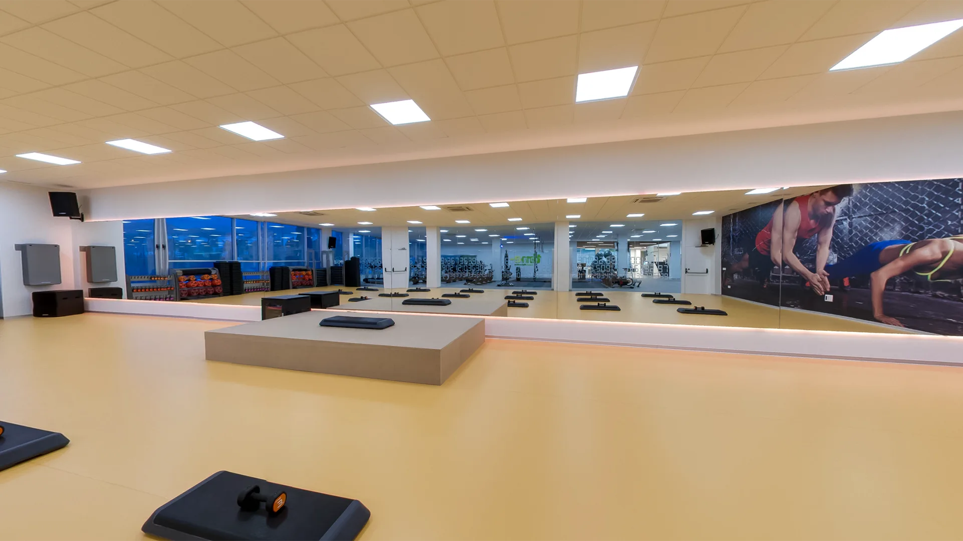 Peso libre, circuito de máquinas guiado y espacio cardiovascular. sala de actividades coreográficas, una sala de ciclo indoor de 150 m2 con un espectacular sistema audiovisual y de iluminación, y una sala de cuerpo y mente de 120 m2 en un lugar privilegiado de nuestras instalaciones.